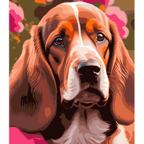 Набір для розпису по номерах Вираз собачого погляду, Strateg, на кольоровому фоні, 40x50 см, MZ018