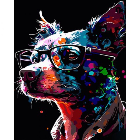 Набір для розпису по номерах Яскравий песик в окулярах, Strateg, на чорному фоні, 40x50 см, AH1017