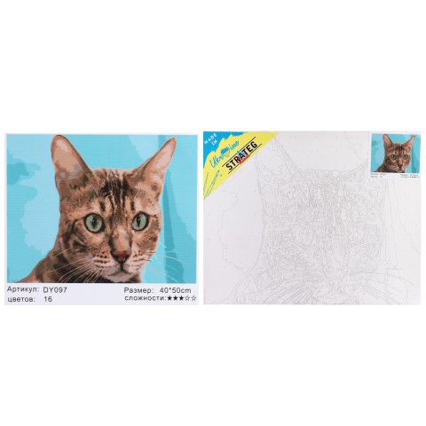 Набір для розпису по номерах Зеленоокий кіт, Strateg, 40x50 см, DY097