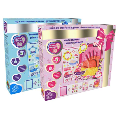 Діти дуже швидко ростуть, тож варто зберегти відбиток маленької ручки чи ніжки вашого малюка. Ми зможемо допомогти вам зупинити цікаву мить завдяки цьому чудовому набору HAPPY MOMENT. Впевнені, що оформлення цієї рамки принесе неймовірне задоволення вам, як батькам і ще довго тішитиме своїм виглядом.Комплектація:Лайт 12 шт.Рамка 1 шт.Метрика 1 шт.Переваги набору Happy Moment :– набір-подарунок– чіткий поділ на набір для хлопчика і набір для дівчинки– метрика з авторськими наклейками виготовлена на ізолоні, що робить їх стійкими до зовнішніх факторів, наклейкидекоровані фольгою.– рамка з особливим дизайном для хлопчика і дівчинки.Рамка виготовлена з якісних матеріалів і з дотриманням технічних стандартів– легкий стрибаючий пластилін є сертифікований і безпечний для найменших дітей, не викликає алергічних реакцій.Кольорова гама з пастельних кольорів розроблена для ніжних відчуттів і доповнення загального концепту лінійки