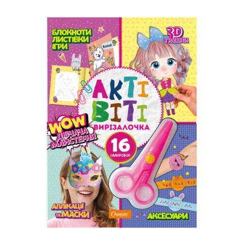 Батьки можуть гратися з дітьми і створювати круті саморобки весело та просто: вирізати вже готові елементи й послідовно дотримуватися інструкції. Нічого не треба придумувати, або шукати додаткові деталі чи матеріали, просто вирізати, згинати, приклеювати, гратися. Для діток в допомогу вже є зразок-підказка готового виробу, при потребі паперові заготовки можна наклеїти на картон. Яскраві безпечні ножиці вже є в наборі.Батьки будуть у захваті наскільки легко їх діткам сподобається створювати дивовижні речі власноруч, при чому вони справляться з цим навіть без допомоги дорослих!Готовими саморобками можна весело гратися, або прикрасити кімнату, а можна зробити друзям та рідним подарунок своїми руками чи поповнити твою колекцію саморобок. В будь-якому випадку, дітям сподобається творчий процес і вони будуть задоволені результатами своєї роботи.Більшість дітей та підлітків полюбляють створювати цікаві речі своїми руками.Додайте "АКТІВІТІ-ВИРІЗАЛОЧКУ" до свого ассортименту, адже це справжня творча майстерня!Використовуючи безпечні, спеціальні дитячі ножиці з набору, дитина не поріжеться, тому саморобки з "АКТІВІТІ-ВИРІЗАЛОЧКИ" можна виготовляти з раннього віку, як тільки малюк навчиться тримати в руках ножиці.