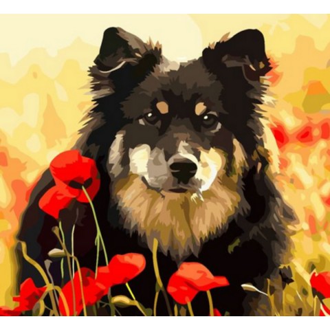 Набір для творчості алмазна картина Песик у маковому полі Strateg HEE13812, 30x30 см