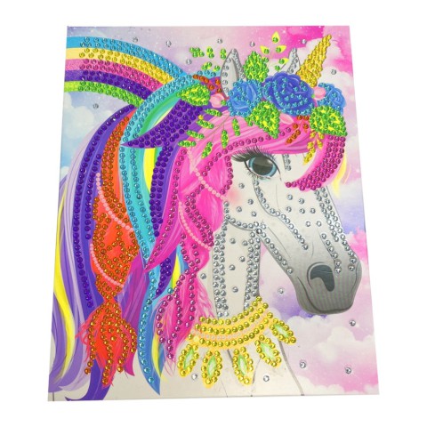 КОМПЛЕКТАЦІЯ:1) картинка для декорації димантами 200×250 мм (картон каширований, друк із флуоресцентними фарбами, клейовий шар для декоративних діамантів, вкрита захисною плівкою) - 1шт; 2) декоративні діамантики 7 кольорів (кожен колір в окремому пакетику);3) стилус - 1 шт;4) квадратик із клейкою масою для стилуса - 1шт;5) пластмасовий лоток для сортування декоративних діамантиків;6) паперова інструкція - 1шт.Набір упакований картонну коробку з європідвісом (розмір: 206×285×18; друк з флуоресцентними фарбами; матова ламінація, тиснення фольгою).