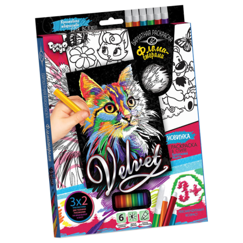 Набір для творчості Оксамитова розмальовка фломастерами VLV-01, 10 видів Кіт