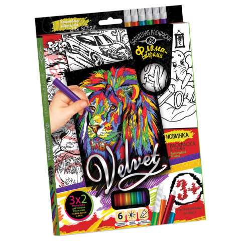 Набір для творчості Оксамитова розмальовка фломастерами VLV-01, 10 видів Лев 2