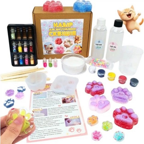 Набір для створення сквішів "Таба Лапок" – це чудова можливість створити унікальні антистрес іграшки своїми руками. У наборі є всі необхідні матеріали та прості інструкції, які допоможуть вашій дитині легко створити власні сквіші.
