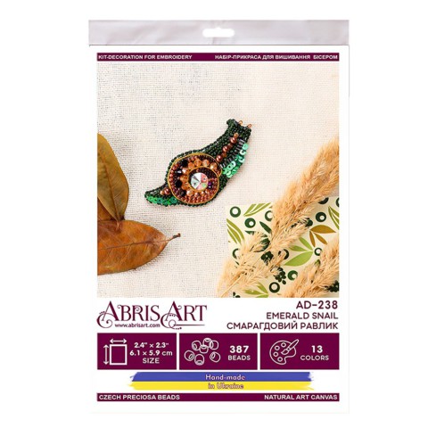 Набір для вишивання бісером прикраси "Смарагдовий равлик" AD-238 на натуральному полотні