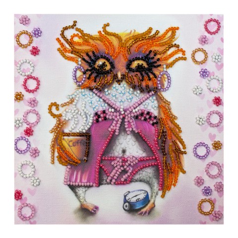 Набір для вишивання бісером "Сова з чашкою кави" AM-104 15х15 см