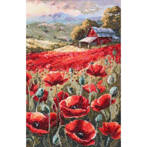 Набір для вишивання хрестиком "Маки на заході сонця" AH-221 з п'яльцями