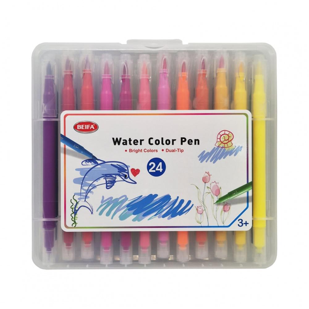 Набір двосторонніх фломастерів Beifa, 24 шт (пензель + лінер)