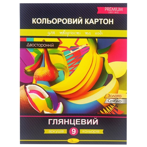 ДВОСТОРОННІЙ картон" ГЛЯНЦЕВИЙ" має особливий ефект глянцевої фарби. Аркуші картону мають відповідний святковий відблиск. З даного виду кольорового картону діти можуть створювати красиві аплікації, які матимуть чарівний вигляд та святковий глянцевий блиск.Створюйте красиві аплікації зі яскравими барвами та різноманітними відтінками разом з колекцією кольорових паперів та картонів від ТМ "Апельсин". Наш асортимент включає всі необхідні матеріали для створення найяскравіших проєктів - від дитячих малюнків до професійних колажів-аплікацій. Асортимент продуманий для професійної співпраці із торговими мережами та їхніми клієнтами. Наші папери та картони розроблені за унікальними технологіями, завдяки чому вони мають різні ефекти, включаючи ефекти голографії та візерунків, що робить їх ідеальними для різних творчих задумів. Наважуйтеся на творчість разом з нами і дивуйте світ своїми яскравими та оригінальними проєктами!Формат/розмір: А4Кількість аркушів: 9Кількість кольорів: 7 глянцевих кольорів(синій, зелений, чорний, червоний, жовтий, помаранчевий, фіолетовий)+1 золото+1 сріблоКількість дизайнів обкладинки: 2 дизайни; МІКС дизайнів в упаковці.Обкладинка та скріплення: папка-планшет з картону, м’яка.Блок: картон крейдований кольоровий глянцевий; двосторонній кольоровий друк.