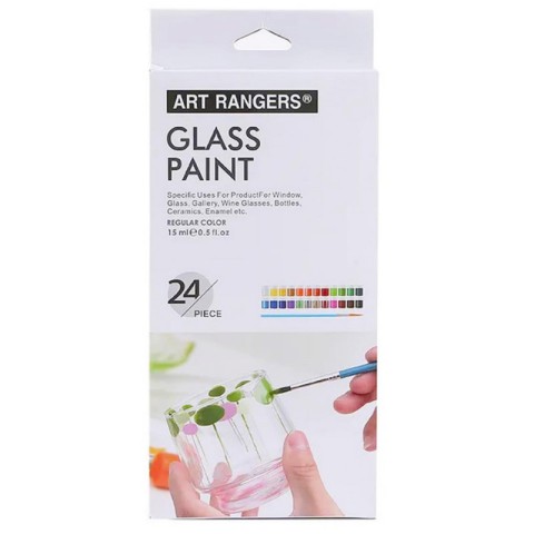 Набір фарб для скла GAS2415, 15 мл, 24 кольори, 3 пензлика