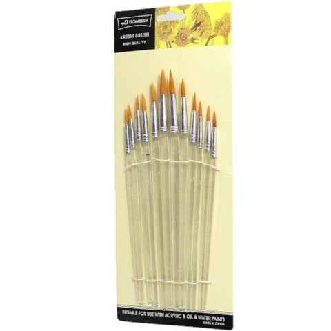 Універсальний набір плоских пензлів із синтетичного волокна (нейлону), який стане незамінним інструментом як для професійних художників, так і для початківців чи учнів художніх шкіл. Плоска форма пучка ідеально підходить для нанесення широких рівномірних мазків, зафарбовування фону та створення чітких контурів.