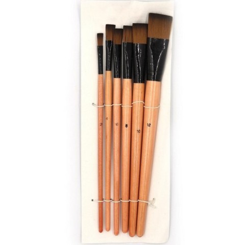 Універсальний набір плоских пензлів із синтетичного волокна (нейлону), який стане незамінним інструментом як для професійних художників, так і для початківців чи учнів художніх шкіл. Плоска форма пучка ідеально підходить для нанесення широких рівномірних мазків, зафарбовування фону та створення чітких контурів.