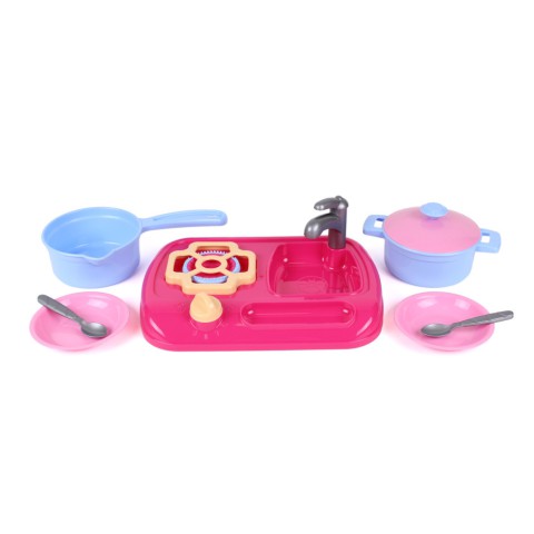 У новій кухні є все найнеобхідніше для маленьких кухарів. На поверхні з газовою конфоркою можна приготувати смачні страви для іграшкових друзів. Для цього в наборі є велика каструля з кришкою, сотейник, тарілки, ложки та виделки.А після святкового обіду треба помити посуд. Це можна зробити в іграшковій мийці з краном і рухомий ручкою.Іграшкова кухня з набором посуду - є прекрасним подарунком для всіх дітей. З такою іграшкою маленькі кухарі можуть грати на справжній кухні й допомагати мамі. Такі ігри добре розвивають моторику і дитячу уяву.Набір продається в яскравій коробці з ручкою, за яку його зручно переносити.У наборі: кухонна стільниця, кран, каструля, сотейник, кришка, ложки, виделки, тарілки по 2 шт. Іграшка для дітей від 3-х років.Розмір упаковки: 33х23х10,5 см.