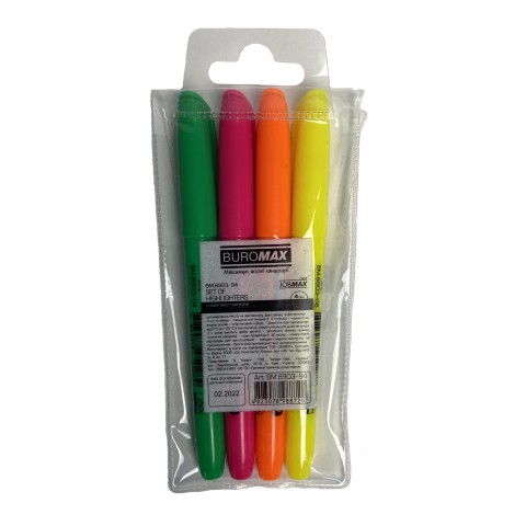Набір текст-маркерів JOBMAX, круглих, 4 шт. дозволяє виділяти текст чотирма кольорами завдяки водним чорнилам. Включає 4 маркери з круглим наконечником 2-4 мм та інструкцію. Ідеально для шкільної творчості. Створюйте яскраві шедеври! Купуйте на Demsky.com.ua.