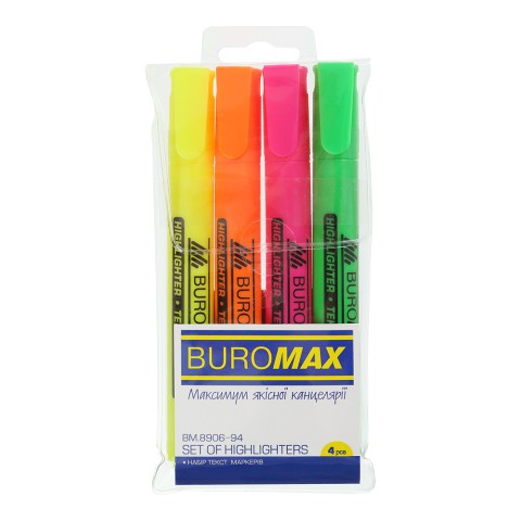 Набір текст-маркерів, круглих, 4 шт. пропонує виділення тексту чотирма кольорами завдяки водним чорнилам. Включає 4 маркери з круглим наконечником 2-4 мм та інструкцію. Ідеально для шкільної творчості. Створюйте яскраві шедеври! Купуйте на Demsky.com.ua.