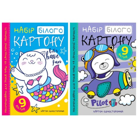 Набір картону білого одностороннього, 208x295 мм, 9 аркушів, у папці, 2 шт. в упаковці
