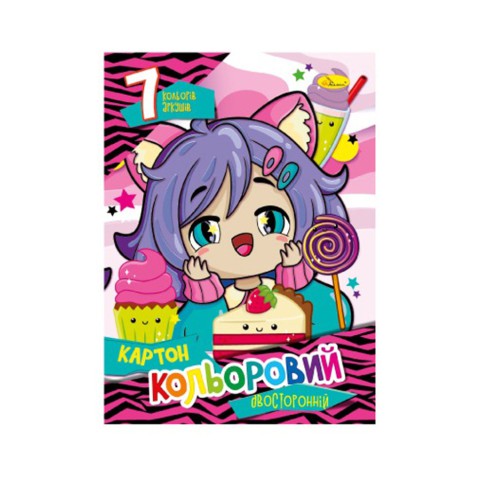 Набір кольорового картону А4 Автоспорт АП-1102-5 двосторонній 7 аркушів