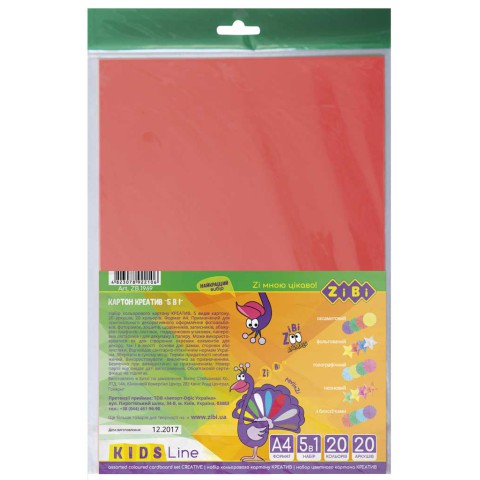 Набір кольорового картону А4, креатив, 20 аркушів