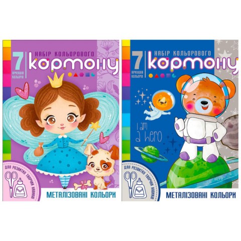 Набір кольорового картону металізованого, 205x280 мм, 7 аркушів, дизайн 21429-21430, 2 шт. в упаковці