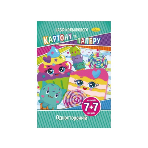 Набір кольорового паперу та картону А-4 НКП-А4-7, 7+7 листів Солодощі
