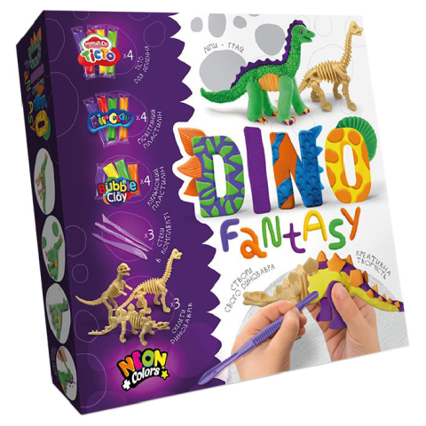 Націлений на розвиток дрібної і великої моторики, універсальний набір креативної творчості "Dino Fantasy" укр. DF-01-01U відрізняється цікавою тематикою, яка приверне увагу як хлопчика, так і дівчинки. Якщо Ваш малюк обожнює тематику доісторичних тварин, то такий подарунок створений спеціально для нього. На прикладі іграшкових звірят, розкажіть своїй дитині про особливості існування того чи іншого виду динозаврів, що посприяє розширенню його кругозору і поповненню словникового запасу. У процесі ліплення звіряток власними руками Ваш малюк буде занурюватися в захоплюючий, фантастичний світ, розвиваючи уяву, уважність, асоціативне й логічне мислення. Набір включає в себе безпечне тісто для ліплення (4 шт), кульковий і повітряний пластилін (4 шт), а також три скелета динозаврів, 3 пластикових стека для ліплення і докладну інструкцію для новачків.