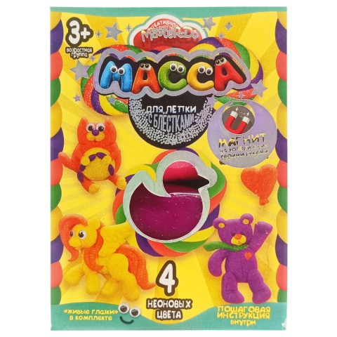 Її унікальність полягає у складі самого матеріалу тіста. Воно дуже м'яке, але добре тримає форму, приємне на дотик, ЯСКРАВЕ і БЕЗПЕЧНЕ (тільки не треба його жувати :)))) Різнокольорові брикети тіста та ІНСТРУКЦІЯ МАЙСТЕР-КЛАС допоможуть створити чарівний світ із найрізноманітніших предметів і кумедних іграшок, які дитина із задоволенням зробить сама. Ніжність і пластичність матеріалу сприяють розвитку тактильних відчуттів і дрібної моторики рук у дітей, а дорослі із задоволенням помнуть його в руках, релаксуючи і відволікаючись від побутових проблем. Створіть свій власний фантастичний або кулінарний шедевр і поділіться успіхами з близькими! Містить 4 пакетики з тістом різних кольорів.