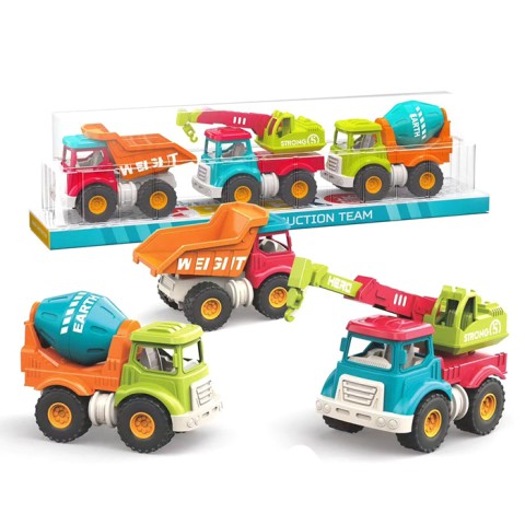 Набір машин Будівельна техніка 3 шт 11 см з інерцією – будівельні моделі для ігор, з пластику, інерційний механізм для руху. Деталі реалістичні, стійкі. Підходить для хлопчиків від 3 років як іграшка.