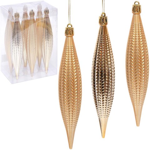 Набір новорічних прикрас Бурульки Золото 6 шт 6279-3A – золоті бурульки 6 шт. Блискучі.