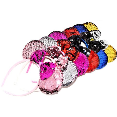 Набір обідків для волосся "Міккі" 0106-264 вушка в паєтках, 6 штук
