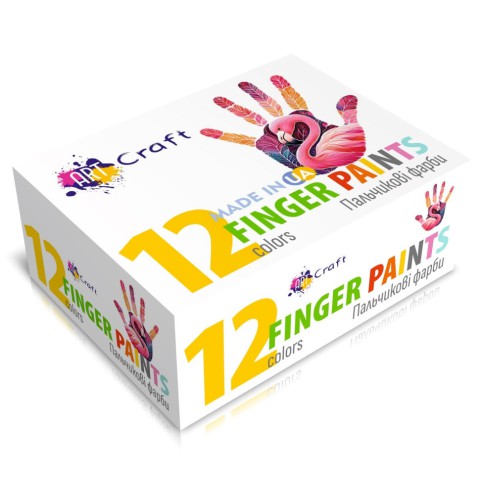 Набір пальчикових фарб 12 кольорів (малиновий, бірюзовий, синій, зелений, жовтий, червоний, коричневий, помаранчевий, рожевий, салатовий, блакитний, фіолетовий). Фарби підходять для малювання пензликами, спонжами або безпосередньо пальчиками. ПОПЕРЕДЖЕННЯ! Для дітей віком від 3-х років. Не допускати потрапляння до рота та очей складових набору. ОСОБАМ ВІКОМ ДО 14 РОКІВ ВИКОРИСТОВУВАТИ ПІД НАГЛЯДОМ БАТЬКІВ! Містить дрібні деталі. Після використання ретельно вимити руки теплою водою з милом. Особливості умов зберігання: зберігати в сухому місці при температурі від +5 до +30 С та відносній вологості не більше 75%. Фарби зберігати зі щільно закритими кришечками, якомога далі від сонячних променів для запобігання передчасного висихання. Продукція відповідає встановленим медичним критеріям безпеки. Не підлягає обов’язковій сертифікації в Україні. Використовувати за призначенням. Склад: високоякісні дисперсії на водній основі та колоранти. Термін придатності 2 роки Зроблено в Україні