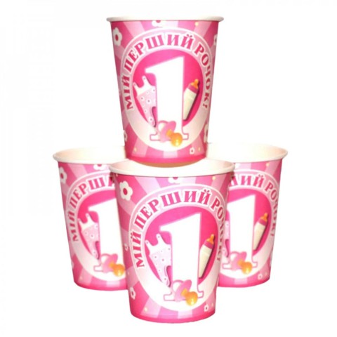 Набір паперових склянок "Мій перший рік" рожевий 7036-0039, 10 шт