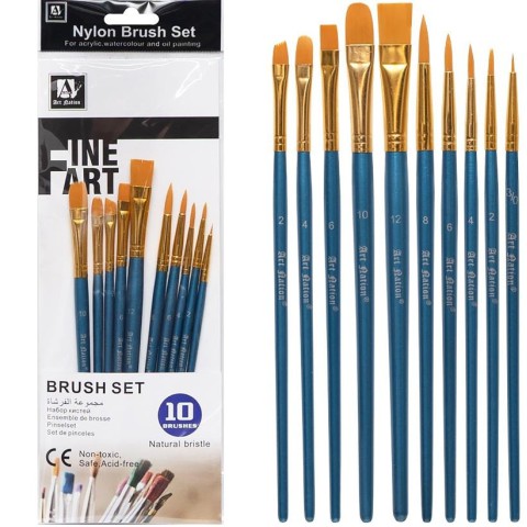 Набір пензликів 10шт. Використовується під час малювання. Пластикові ручки нейлонові.