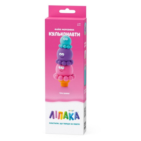 Набір пластиліну, що самостійно твердіє, ЛІПАКА – ФАЙНІ МОРОЗИВКА: КУЛЬКОНАВТИ – розважить і малюків, і дорослих. За допомогою анімаційних інструкцій в додатку HEY CLAY, Ви зможете зліпити морозивко. А завдяки компактним розмірам, набір зручно брати з собою. Пластилін твердіє на повітрі протягом 24 годин, після чого можна гратися створеними фігурками.