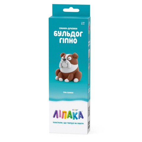 Набір пластиліну, що самостійно твердіє, ЛІПАКА – СОБАКИ-ДРУЗЯКИ: БУЛЬДОГ ГІПНО – розважить і малюків, і дорослих. За допомогою анімаційних інструкцій в додатку HEY CLAY, Ви зможете зліпити собаку. А завдяки компактним розмірам, набір зручно брати з собою. Пластилін твердіє на повітрі протягом 24 годин, після чого можна гратися створеними фігурками.