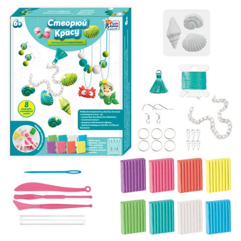 Набір полімерної глини 4FUN Game Club, 38406, 8 кольорів, форми, фурнітура, ланцюжок
