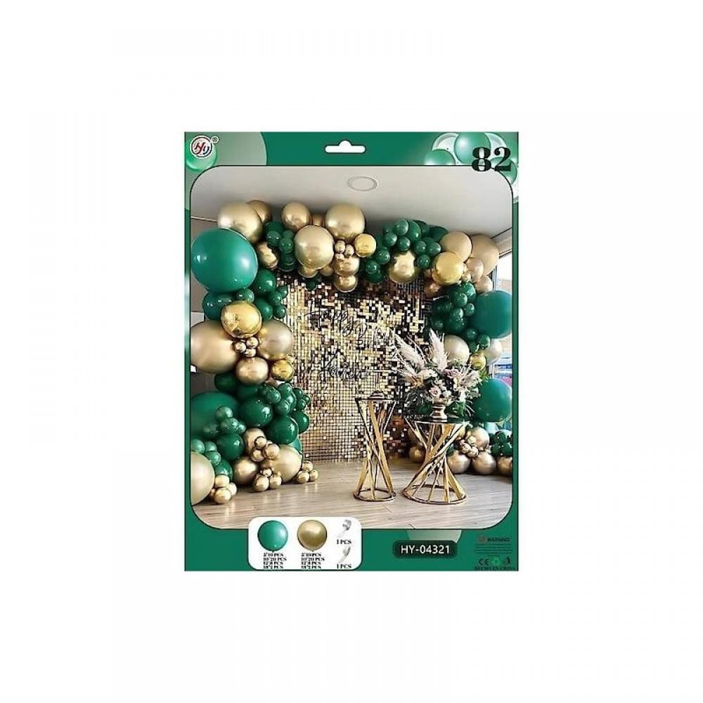 Набір повітряних куль у зелених та золотих відтінках - стильне рішення для створення святкової фотозони, декору приміщення або оформлення урочистої події. Поєднання насиченого зеленого кольору з елегантним золотом виглядає святково й водночас вишукано, підходить для днів народження, тематичних вечірок, ювілеїв, свят та фотосесій.