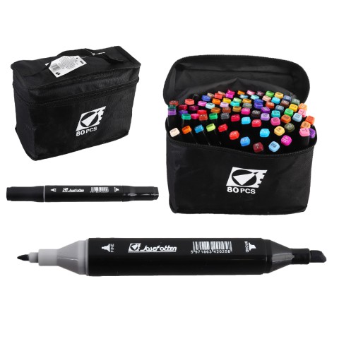 Набір скетчмаркерів двосторонніх, 80 шт., 80 кольорів, круглий/скошений наконечник, у сумці