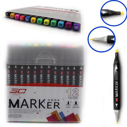 Набір скетчмаркерів двосторонніх SC Professional 12 кольорів з скошеним та круглим наконечником.