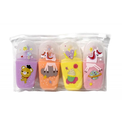 Набір текст-маркерів дитячих, 4 шт. дозволяє виділяти текст яскравими кольорами з дитячим дизайном. Включає 4 маркери з водними чорнилами, клиновидним наконечником 1-4 мм та інструкцію. Ідеально для шкільної творчості. Створюйте милі шедеври! Купуйте на Demsky.com.ua.
