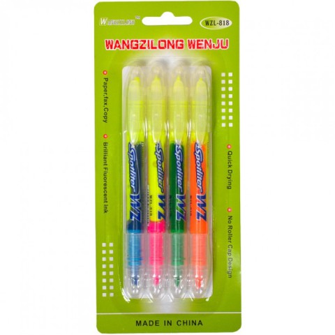 Набір кольорових двосторонніх текстових маркерів на спиртовій основі, з флюорісцентним чорнилом, зі скошеними накінечниками. В упаковці 4 кольори: зелений-жовтий, рожевий-жовтий, блакитний-жовтий, помаранчевий-жовтий. Ширина лінії 1-3 мм.