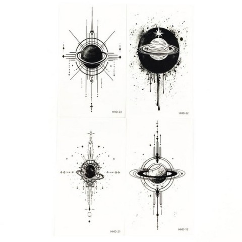 Набір тимчасових тату "Космос" black-tattoo-mini-set-space із 4 чорних по 9,5 х 5,5 см