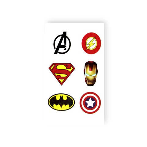 Набір тимчасових татуювань "Значки супергерої" X-204, 6 картинок