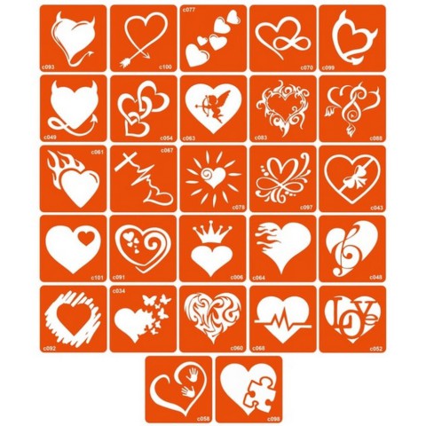 Набір трафаретів для біо-тату "C - сердечка" c_simple_5x5_27_1