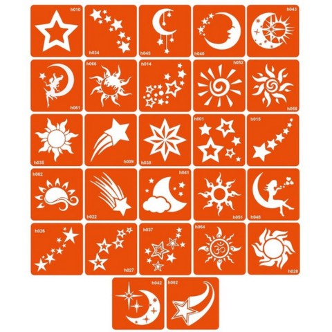 Набір трафаретів для біо-тату "H - зірки, космос" h_simple_5x5_27_1