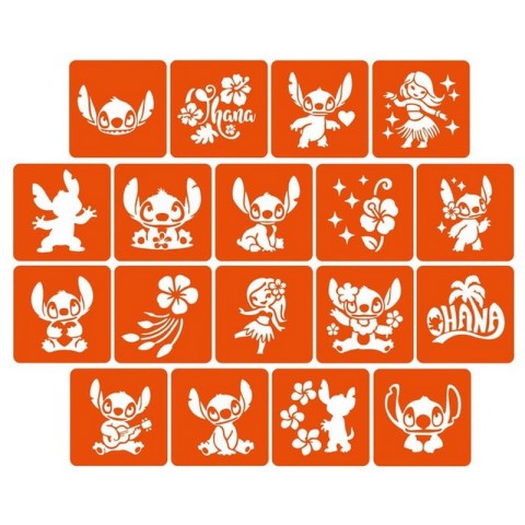 Колекція простих трафаретів "Ліло і Стіч", 18 штук у розмірі 5 на 5 см.