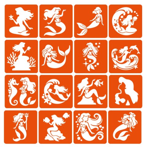 Набір трафаретів для біо-тату "Русалки" mermaids-6x6-16, 16 трафаретів