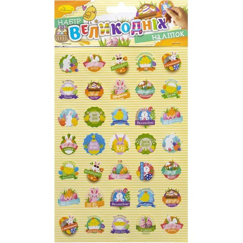 Набір великодніх наліпок - святковий декор для творчості та гарного настрою. Підійде для оформлення листівок, подарункових пакунків і дитячих виробів.