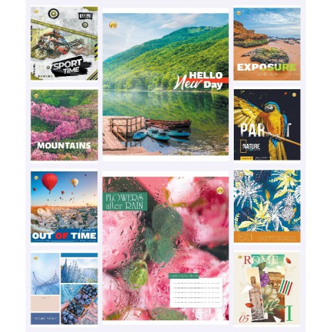 Зошити учнівські 60 аркушів клітинка Тверда 31601 Мікс 6, 10 шт. в упаковці
